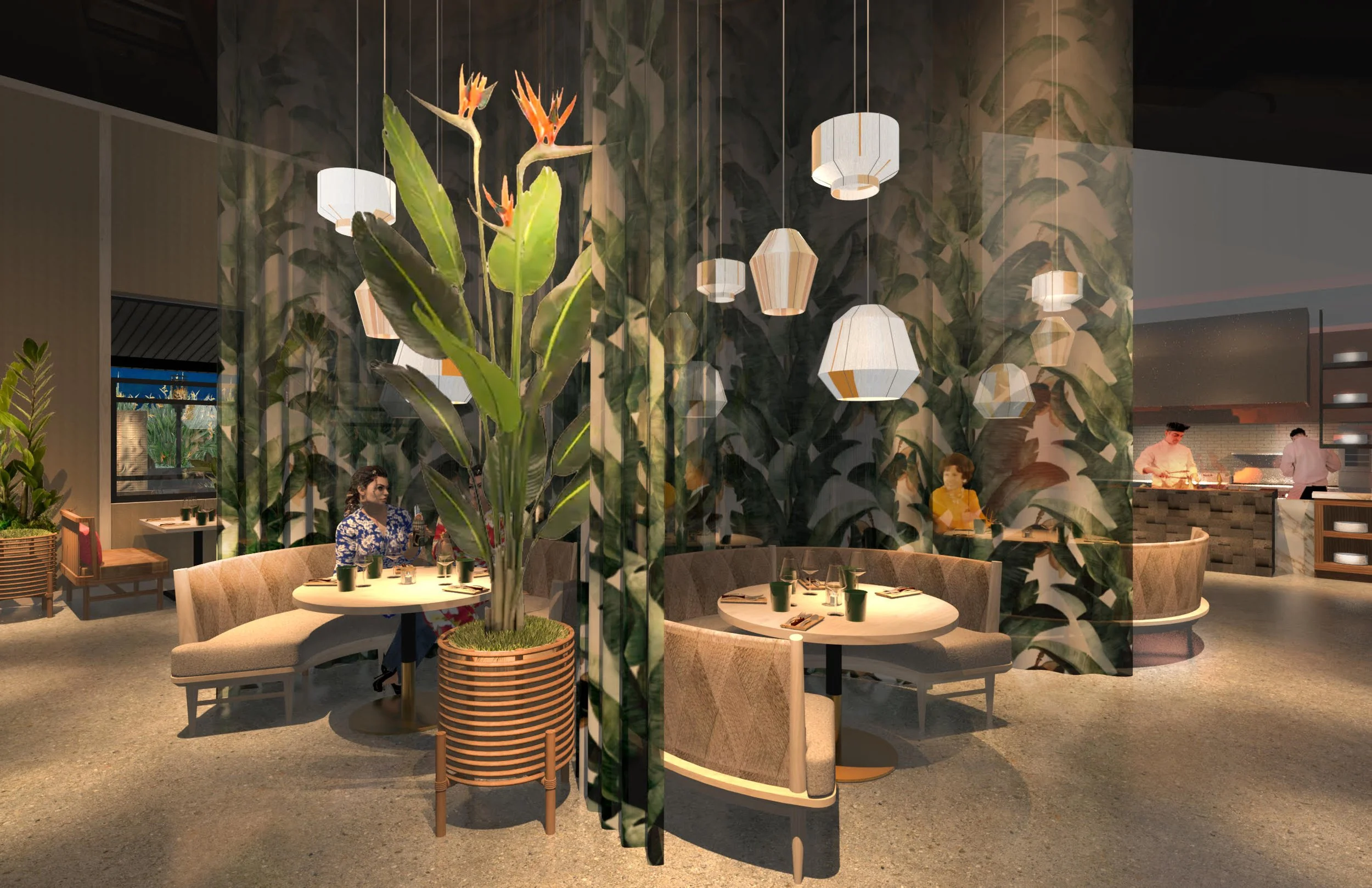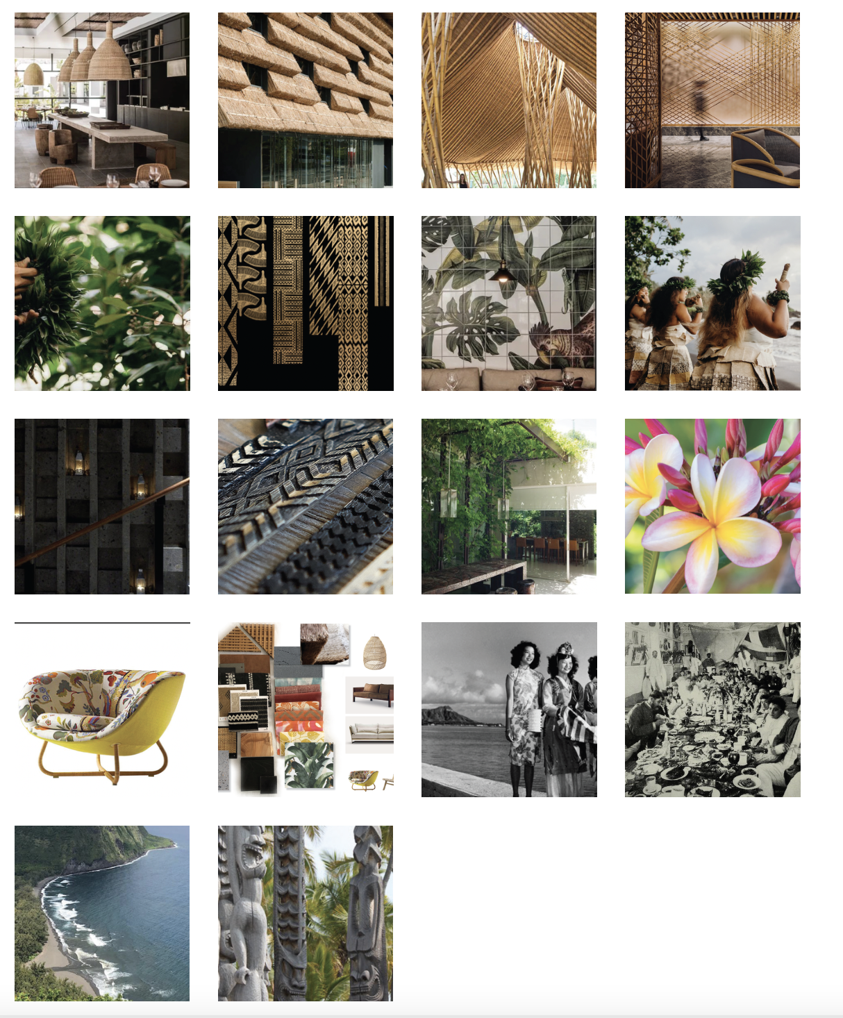 With a focus on the natural beauty of Hawaii, our design will integrate tropical foliage, botanical textiles, lava stone accents, and vibrant, floral hues signature to the unique biome of the Islands. Culture will be important in the visual storytelling, with the use of Kapa Fabric, carved Koa, and bamboo.